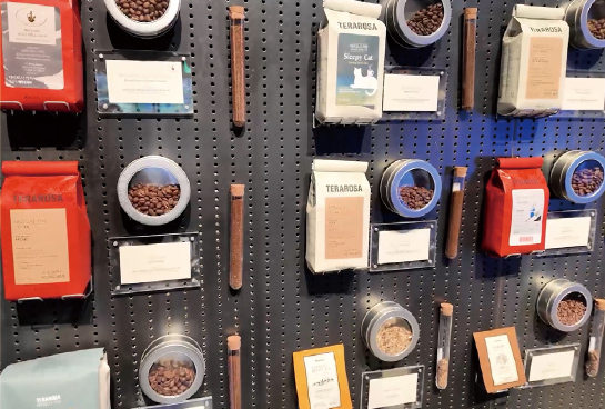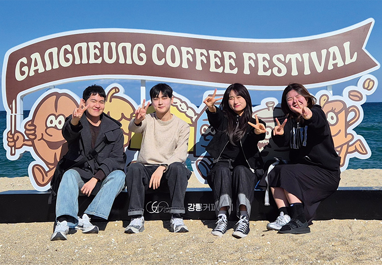 축제를 본격적으로 즐기기에 앞서, 이들은 오전 일정으로 강릉을 대표하는 로스터리 카페 테라로사 본점을 방문했다. 매장 내부에는 생두 자루와 다양한 원두, 커피나무 모종이 전시돼 있었고, 로스팅된 커피 향이 공간을 가득 채우고 있었다. 원두를 살펴보던 이창민 선임조사역은 오스만제국이 커피 무역을 독점하기 위해 생두 반출을 금지하고 볶은 원두만 수출했던 세계사 이야기를 소개했다. 커피 한 잔에 담긴 역사적 맥락을 되짚는 시간이었다. 또한 ‘붉은 땅’을 뜻하는 테라로사라는 이름에는 커피나무가 자라는 산화된 토양을 의미하는 어원이 담겨 있다는 설명도 이어졌다. 단순한 카페 방문이 아닌, 커피의 뿌리와 의미를 이해하는 경험이었다.